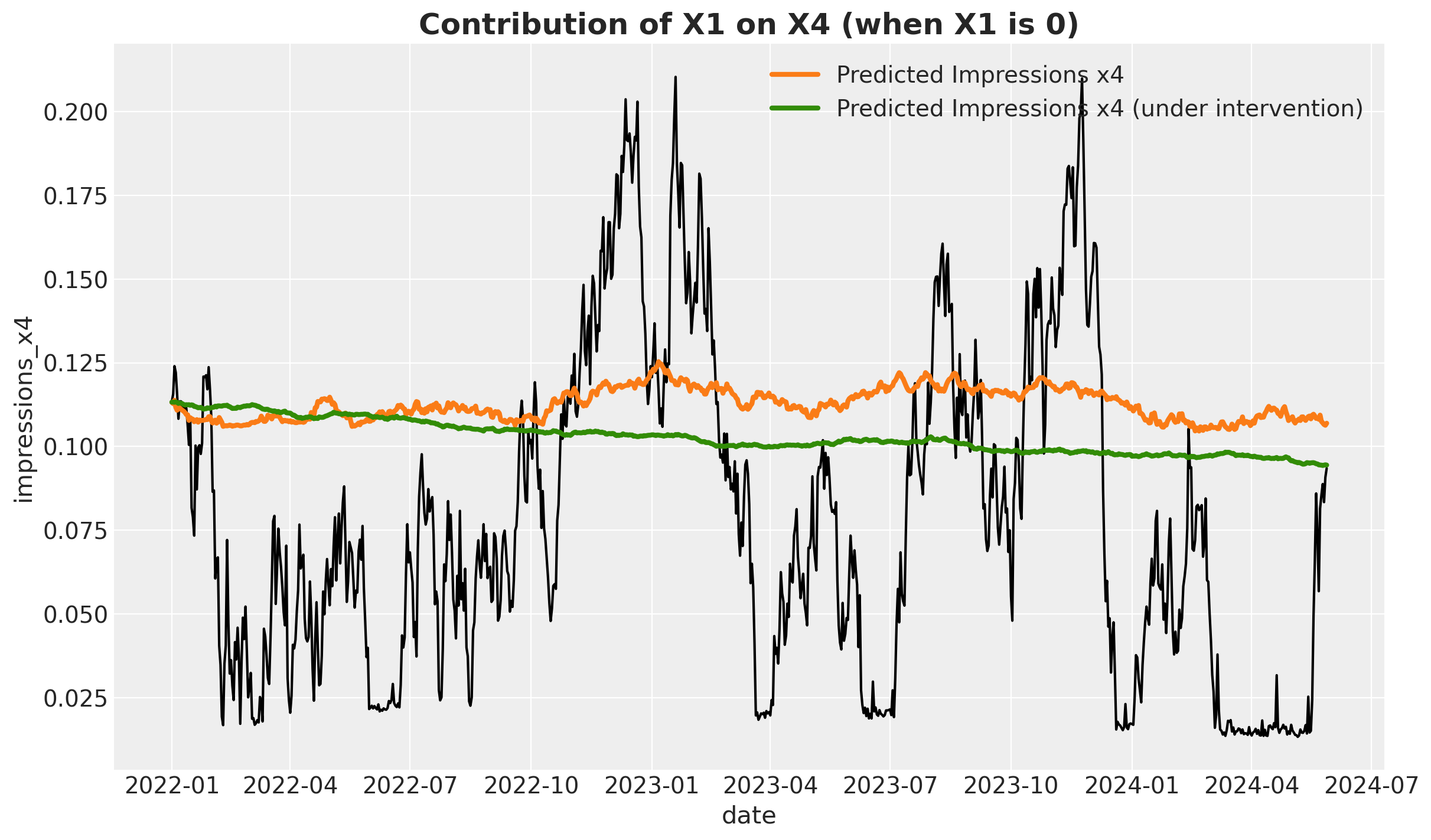 label="Predicted Impressions x4 (under intervention)",