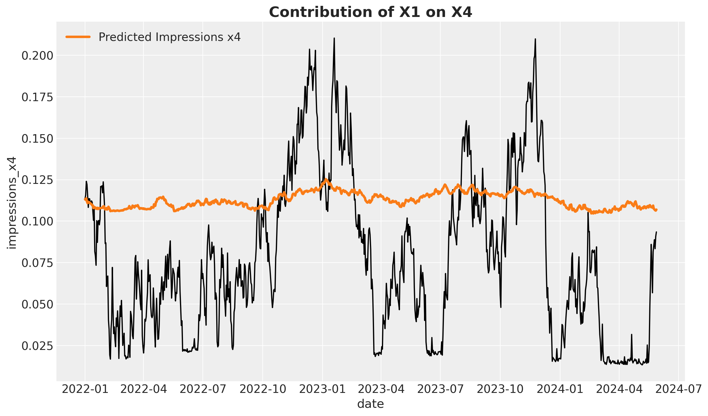 • We have 4 upper-funnel channels: impressions_x1, impressions_x2, impressions_x3, impressions_x4.